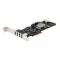Add four USB 3.0 ports with four independent channels, LP/SATA power, and charging support to your PC through a PCI Express slotThe PEXUSB3S44V 4-Port PCI Express USB 3.0 Card lets you add four, dedicated 5 Gbps USB 3.0 ports to your PCIe x4-enabled PC. This independent port architecture improves USB 3.0 performance by transferring data on four individual channels to your computer, giving you faster file transfers.When multiple devices are connected, traditional single bus USB 3.0 cards share your maximum bandwidth between all ports. By employing four host controller chipsets, each port operates on a separate independent transmission channel. Dedicating up to 5 Gbps to each USB port reduces performance bottlenecks, and effectively quadruples your total available to bandwidth to 20 Gbps.Enhanced with UASP support (USB Attached SCSI Protocol), this USB 3.0 controller performs up to 70% faster than conventional USB 3.0 when paired with a UASP supported enclosure (Note: UASP requires a compatible operating system). Using a more efficient protocol than the traditional USB BOT (Bulk-Only Transport), UASP technology optimizes transfers by allowing multiple commands to be processed simultaneously, significantly increasing transfer speeds for less wait time on data transfers. See our UASP test results below for further details.For high-power USB devices, this PCIe USB 3.0 card includes an optional SATA or LP4 power connector to connect to your system power supply and deliver up to 900mA of power per port to USB 3.0 bus-powered devices (500mA for USB 2.0). The USB 3.0 card also supports USB Battery Charging Specification 1.2 (Apple Mode only), letting you charge compatible Apple devices (iPhones and iPads) faster than a standard USB 3.0 port.The controller card is compliant with USB 3.0 standards while offering backward compatibility with existing USB 2.0 / 1.1 devices. For added versatility, the USB 3.0 PCIe card is equipped with a standard profile bracket and includes a low-profile/half-height bracket for installation in small form-factor computers.Backed by a StarTech.com 2-year warranty and free lifetime technical support.Improved Performance with UASPUASP is supported in Windows® 8, 8.1, Server 2012 and Linux kernel 2.6.37 or later. In testing UASP performed with up to a 70% faster read / 40% faster write speed over traditional USB 3.0 at peak performance.At the same peak in testing, UASP also showed up to an 80% reduction in required processor resources.Test results were obtained using an Intel® Ivy Bridge system, StarTech.com add-on USB 3.0 cards, a UASP-enabled StarTech.com enclosure, and a SATA III solid state drive.The StarTech.com Advantage