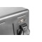 The cabinet is fully mobile, thanks to its 4 smooth-rolling castors (2 lockable) and integrated side handles, allowing easy relocation between rooms. Security is ensured with an electronic PIN combination lock and a sturdy metal frame with a glass front door that opens to a full 180° angle for convenient access.